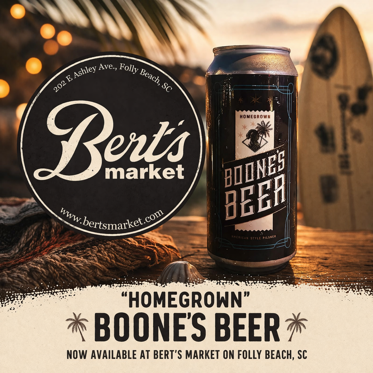"Homegrown" Boone's Beer now available at Bert's Market on Folly Beach, SC! Our Fresh American Pilsner is now available at Bert’s Market on Folly Beach, SC!drinkboonesbourbon.com/boonesbeer#boonesbeer #craftbeer #pils #pilsner #bertsmarket #follybeach Tyler BooneApril 4, 2026Comment Facebook0 Twitter LinkedIn0 Reddit Tumblr Pinterest0 0 Likes