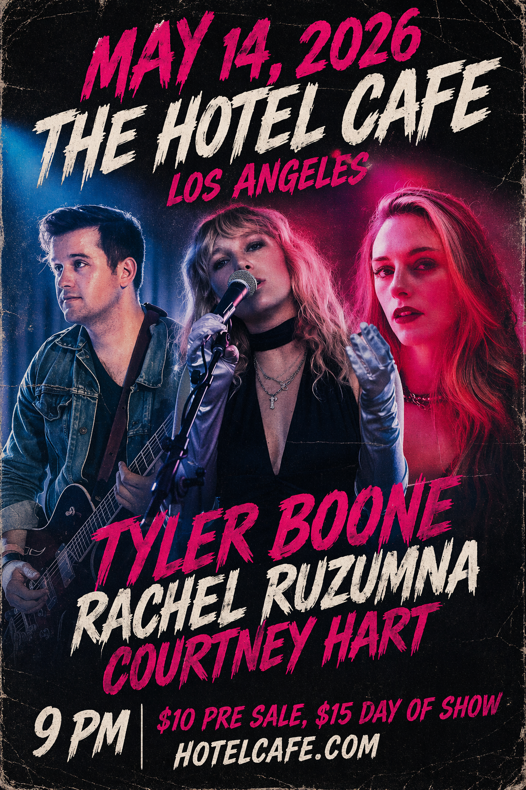 Tyler Boone returns with his band at the historic Hotel Cafe, Rachel Ruzumna & Courtney Hart both will be opening the night an acoustic set